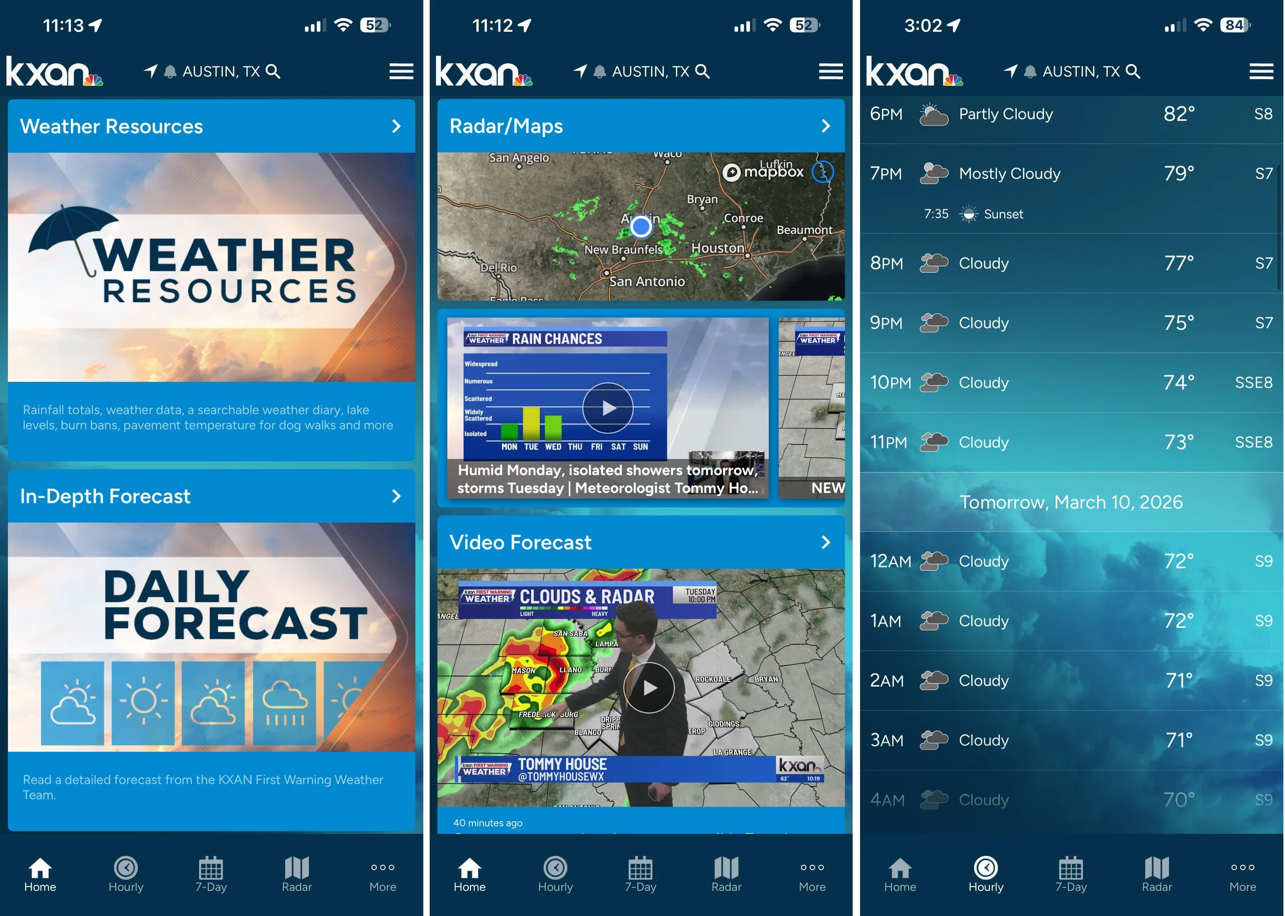 The redesign needed a new background as well. Found inspiration in the angle made by the K and the X in the KXAN logo, but turned it into a forward facing arrow that suggested the passage of time and the quickly changing state of weather.